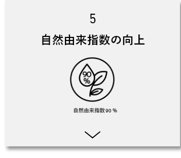自然由来成分90%以上を目指しながら、安全性と安定性を考慮して商品にあった成分を配合しています。化学物質による刺激を抑え、肌本来の力を引き出すやさしい処方です。