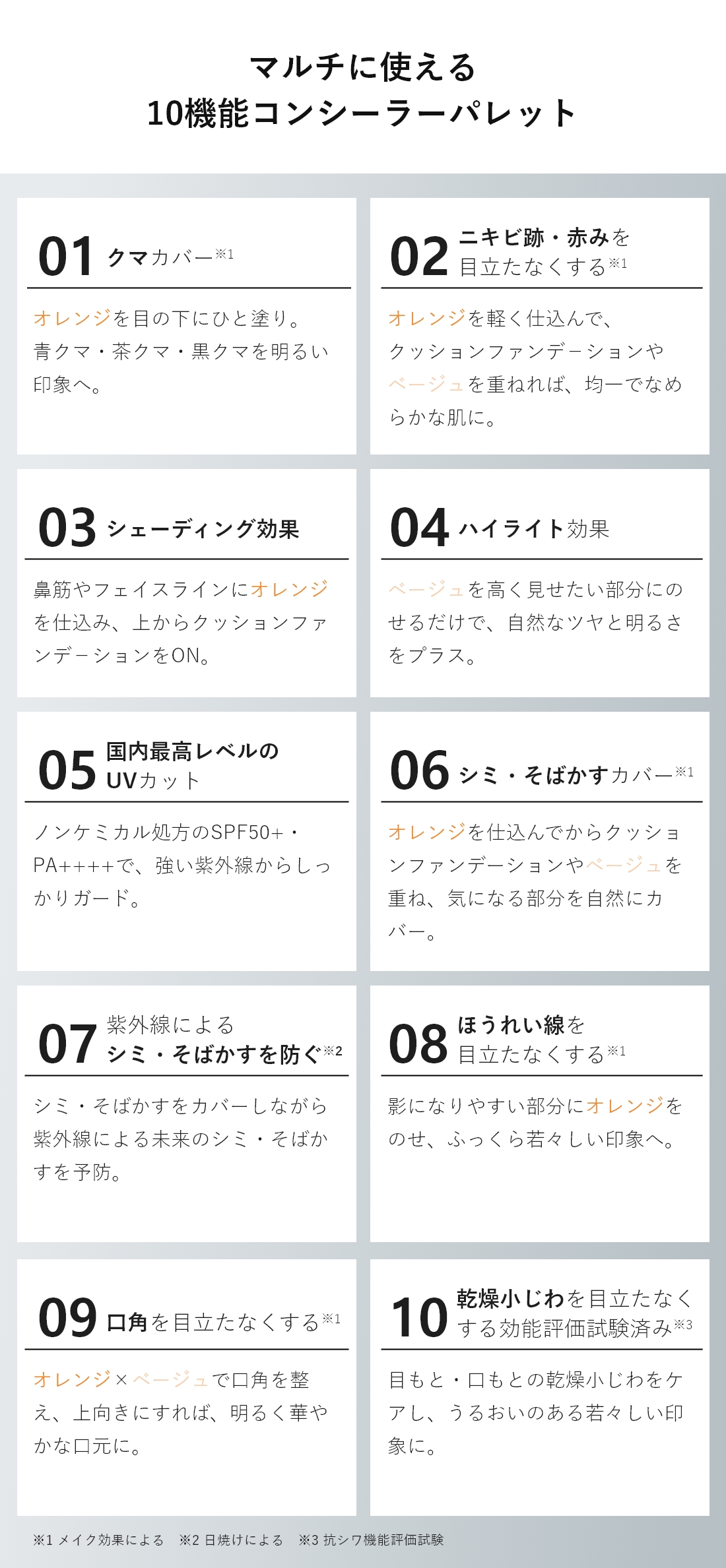 ニキビ跡やシミ・そばかすなどお悩みに沿ってマルチに使える、10機能コンシーラーパレットが登場!
