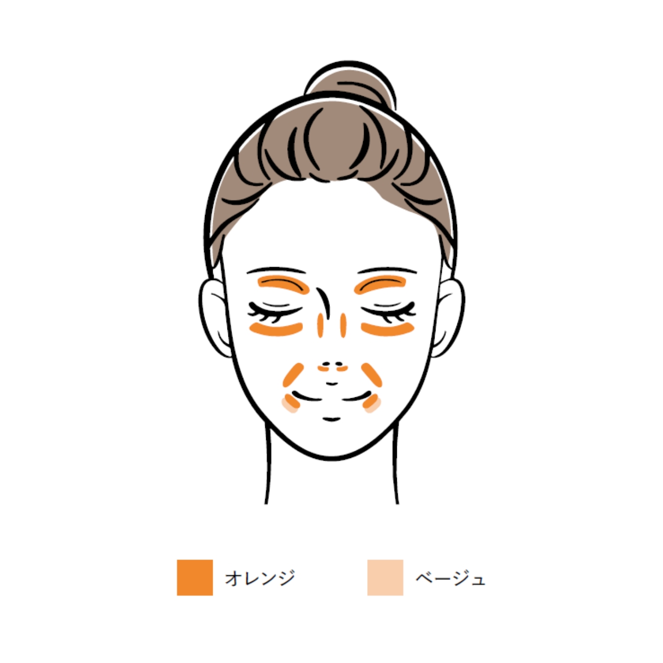 化粧下地や日焼け止めで素肌を整えた後、付属のブラシでテンシーラーをのせ、スポンジ等でかるく叩き込むように伸ばし、肌になじませます。