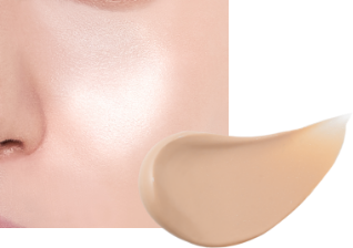 うるおいによって、ふっくらやわらかなハリ感と、光に満ちたツヤのある肌印象へ導く仕上がりに。