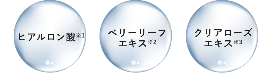 保湿成分として広く知られるヒアルロン酸※1に加え、肌なじみのよいベリーリーフエキス※2、
