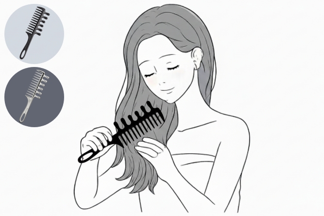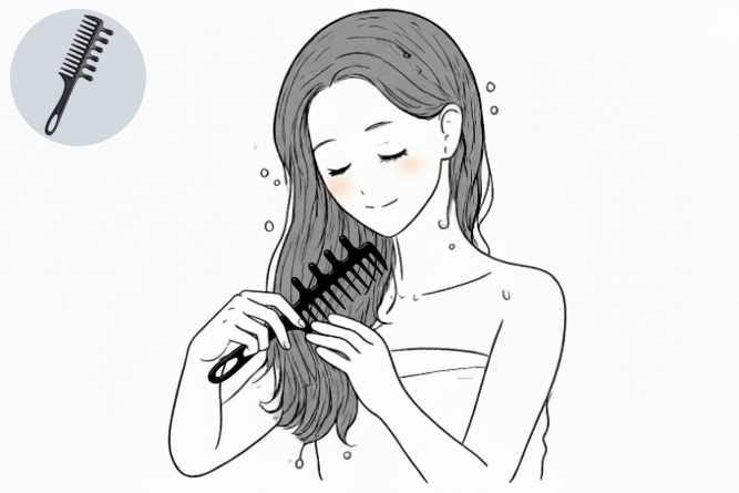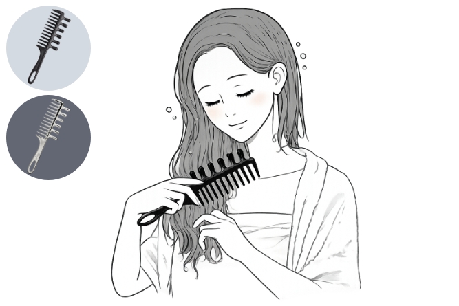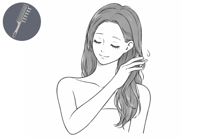 6. タオルドライ後やヘアオイル・トリートメントを髪になじませた後、毛先から順にとかしてください。髪全体に均一にのびやすく、なめらかに整えます。