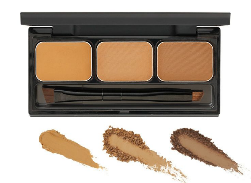 淡く発色のワックスと、しっかり発色するベージュ&ブラウン系パウダーの3色パレット。