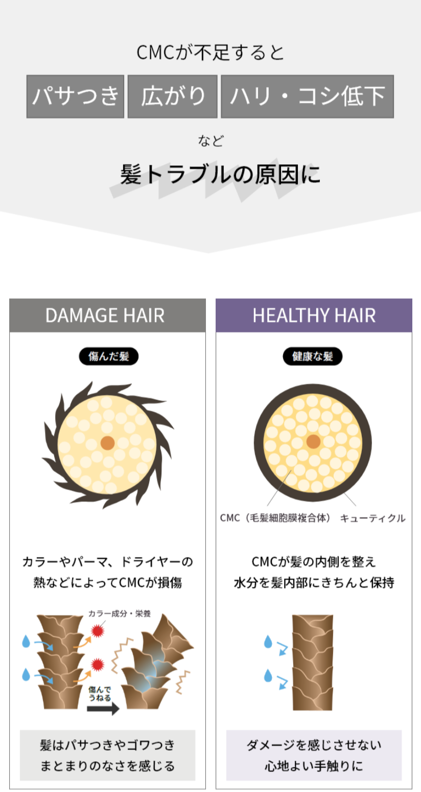 髪の「CMC(毛髪細胞膜複合体)」に着目したヘアケアシリーズ。